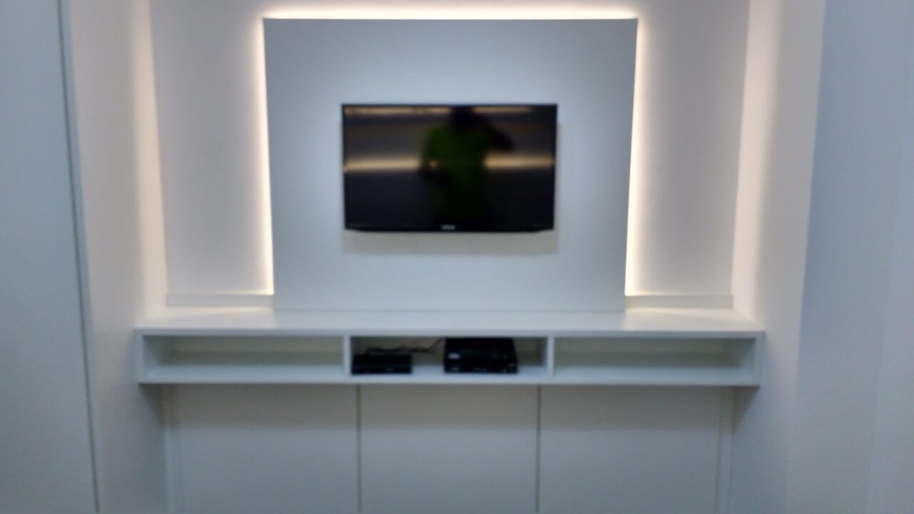 Painel para TV e Painel Embutido para Cama com Nichos de Led